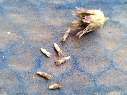 Achäne mit Pappusborsten und „Wunderlampe“ (Lycoteuthis) eine Gattung sehr kleiner Kopffüßler.